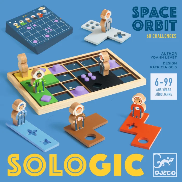 Uključuje 1 drvenu svemirsku ploču s drvenom mrežom, 7 drvenih likova, 13 plastičnih komadića, 30 izazovnih kartica s ilustracijama s obje strane i priručnik na 10 jezika. Savršena igra za djecu koja vole svemir i žele testirati svoje sposobnosti!