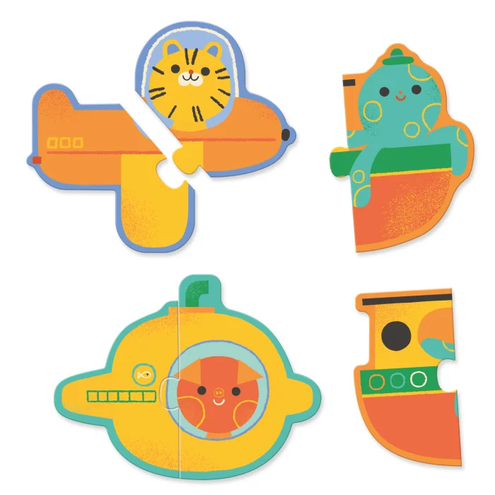 Ove edukativne slagalice potiču logičko razmišljanje i finu motoriku dok dijete spaja dva dijela vozila koje vozi simpatična životinjica. Zahvaljujući čvrstim kartonskim dijelovima prilagođenim malim ručicama, igra je jednostavna i zabavna. Idealno za djecu od 2 godine i starije!