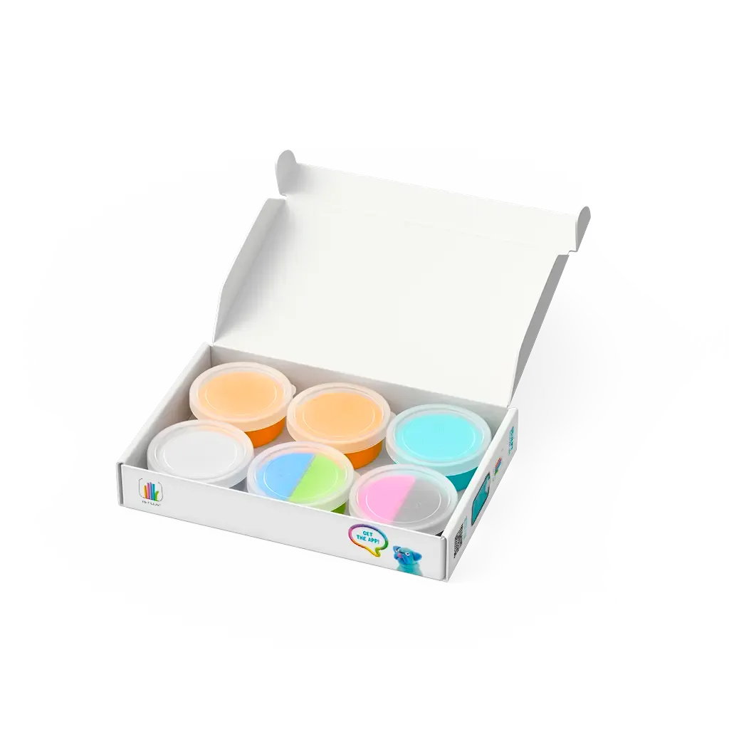 HEY CLAY glina je lagana, meka, savitljiva i prijatna na dodir. Proizvodi se u 18 boja. Sve se mogu miješati u svijetle i neobične nijanse. Posebnog je sastava, tako da se ne lijepi za ruke, odjeću, namještaj i uopšte za bilo šta osim za dječja srca. Nije toksična i ne sadrži gluten. U roku od 20 minuta nakon oblikovanja, figurica će početi da se učvršćuje i pretvara u igračku.