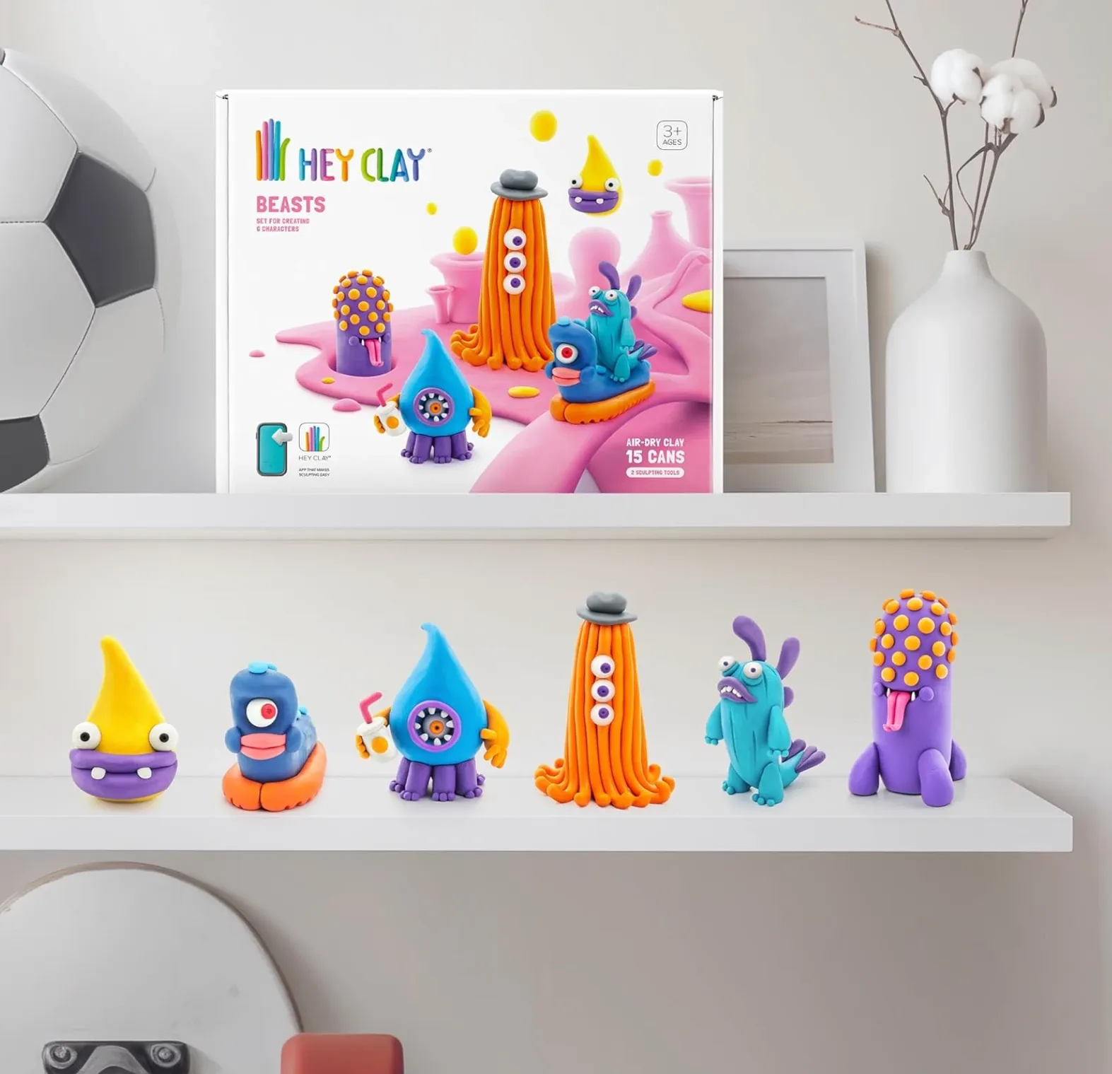 Djeci je urođena kreativnost u različitim dimenzijama. Uz HEY CLAY glinu djeca mogu da zarone u svet ovih šašavih likova, koliko god žele. Na kraju krajeva, ne samo da se može oblikovati bilo koji lik i igrati se sa njim kao sa igračkom, već i naučiti njegovu životnu priču. HEY CLAY glina je dom stotinama likova koji Vas mogu iznenaditi, zabaviti i oduševiti svojim neobičnim izgledom i šalama.
