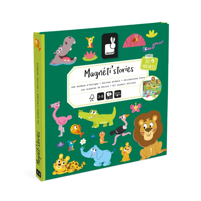 Ova izvanredna igra otvara vrata neograničenom kreativnom izričaju dječje mašte. Sastavljena od 30 čarobnih magneta i prekrasno ilustrirane ploče, ova magnetna igra omogućuje mališanima da stvore vlastite avanture u srcu afričkog rezervata.