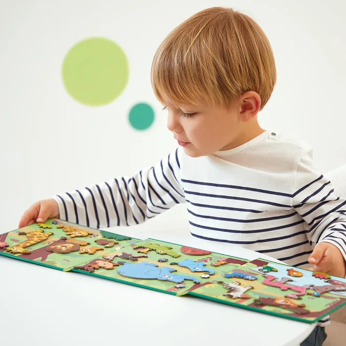 Svaki magnet nosi sa sobom svoju priču – od elegantnih žirafa do hrabrih lavova, šarenih ptica i tajanstvenih zebri. Djeca mogu stvarati scene koje oživljavaju pred njihovim očima, upoznavajući životinjski svijet i istražujući čaroliju divljine, sve dok njihova mašta ne dostigne nebeske visine.