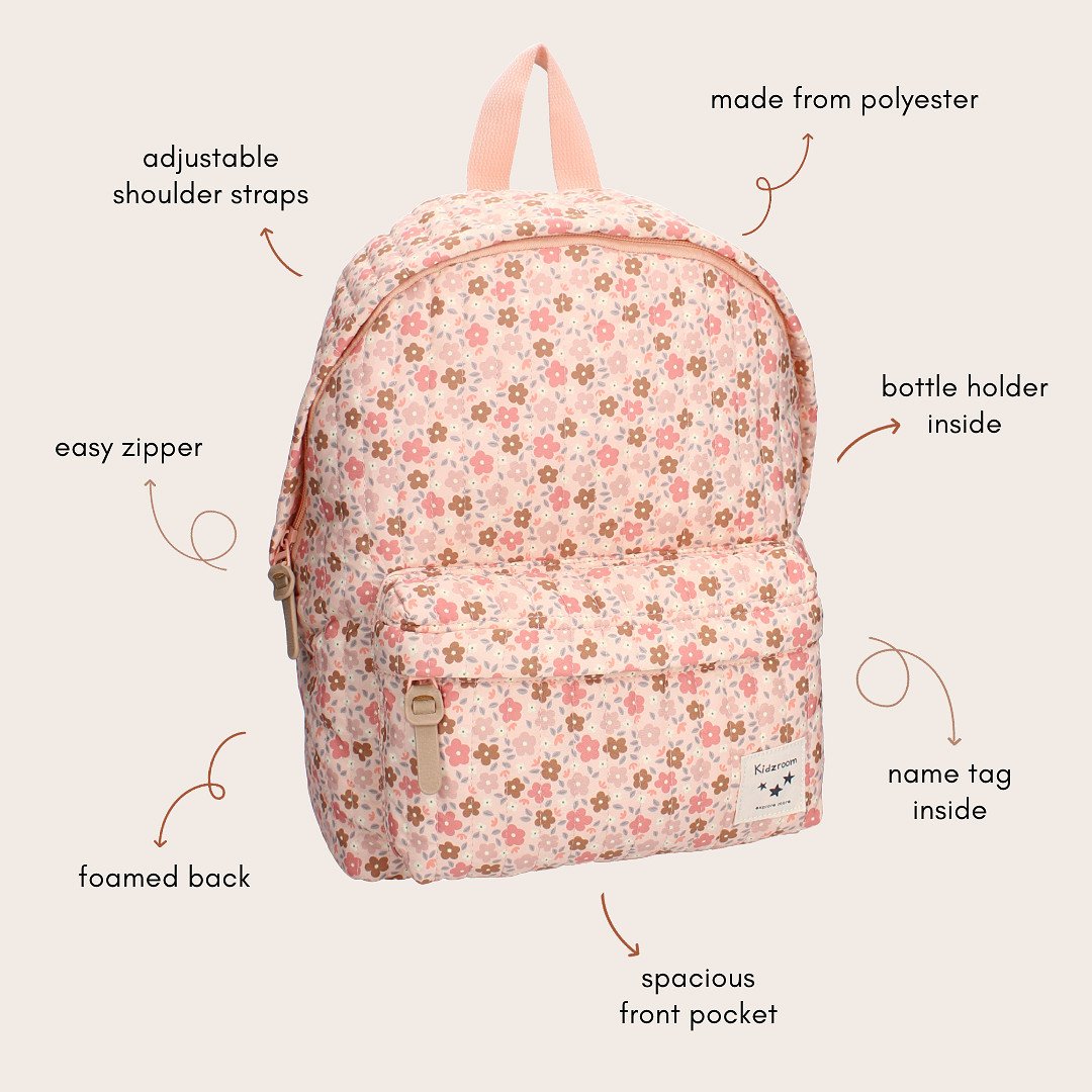 Ovaj slatki ružičasti ruksak s cvjetnim uzorkom savršen je za svaku avanturu! Ruksak iz šarmantne kolekcije Magical Meadows zasigurno će postati omiljeni dodatak vašem djetetu. Ruksak je ukrašen veselim cvjetnim printom i ima praktičan prednji džep s patentnim zatvaračem za sitnice koje moraju ići uz njega. Prostrani glavni pretinac, opremljen dvostrukim patentnim zatvaračem, nudi dovoljno mjesta za, primjerice, kutiju za ručak ili dodatni set odjeće. Idealno za školu ili izlet! Ruksak se može nositi s omčom na vrhu ili udobno na leđima s podesivim naramenicama. Ruksak je opremljen sigurnosnim kopčama za jednostavno zatvaranje.