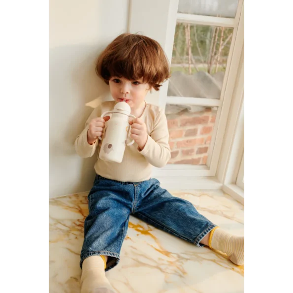 Liewood boca Kimmie 250 ml – Elephant – Creme de la creme. Kimmie bočica za vodu ima dvije jednostavne ručke pričvršćene na poklopac, ugrađenu slamku i izrađena je od nehrđajućeg čelika 18/8.