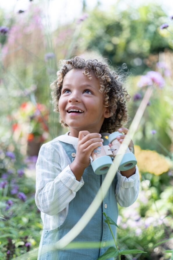 Istražite prirodu ovim drvenim dvogled! Ukrašen prekrasnim bojama i ilustracijama, ovaj dvogled svaku avanturu čini uzbudljivom. Uistinu povećava i može se prilagoditi udaljenosti između vaših očiju za optimalan vid. Pamučna vrpca s čičkom osigurava da dvogled sigurno visi oko vašeg vrata. Idealno za znatiželjne istraživače koji žele istražiti svijet oko sebe!