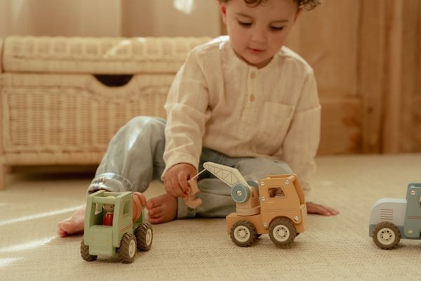 Miješaj i gradi! Ovaj drveni kamion za cement okreće svoju mješalicu za cement dok se vozi po gradilištu. Mini mješalica za beton dolazi s drvenim građevinskim radnikom i ima gumene kotače za dodatnu udobnost vožnje. Vozi se do gradilišta, izlij beton i potpuno poravnaj ceste. Kombiniraj s drvenim bagerom i kiperom za potpuno građevinsko iskustvo.