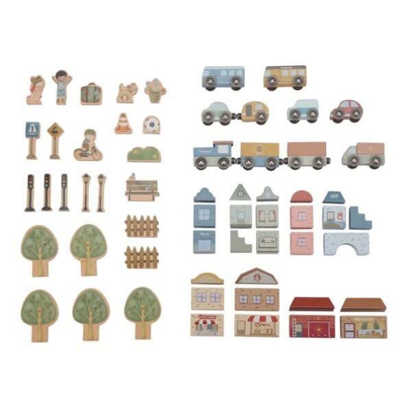 Izgradite vlastiti svijet s drvenim setom vlakova Little Dutch XL! Ovaj opsežni set uključuje lokomotivu, vagone, tračnice, mostove, zgrade, automobile i figure. Tu su i drveće i prometni znakovi. Mogućnosti su beskrajne! Prevezite vlak preko mosta, zaustavite se na stanici i istražite grad. Kombinirajte set vlakova XL s dodatnim setovima kako biste igru učinili još zabavnijom. Ukrcavate li se?