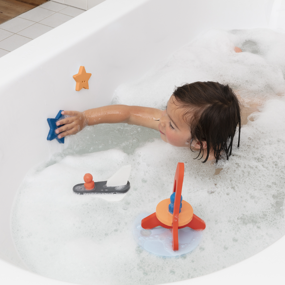 Quut igračka za kupanje Quutopija raketa potiče kreativnost i maštu kod mališana i uz zabavnu slagalicu izmisli bezbroj priča.